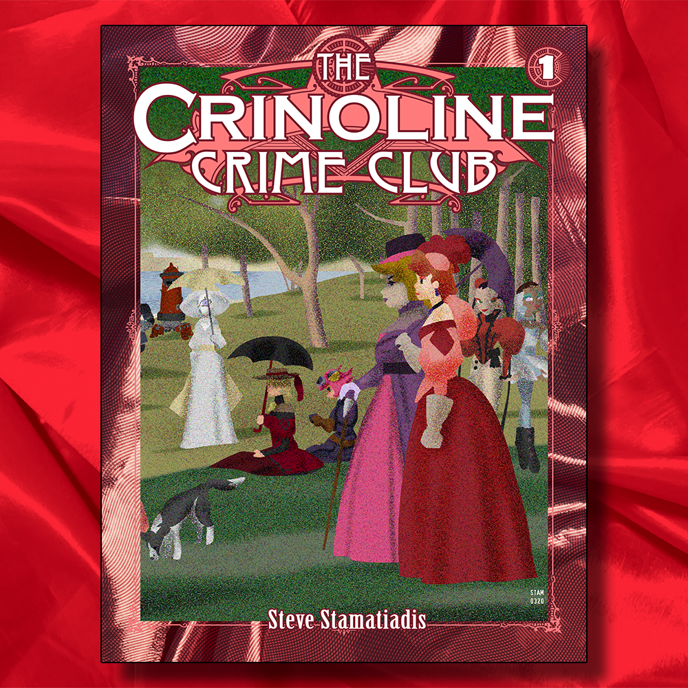 Set in a neo-Victorian era city much like Paris. The Crinoline Crime Club is a comic that features full skirts, curly mustaches, and rooftop chases.