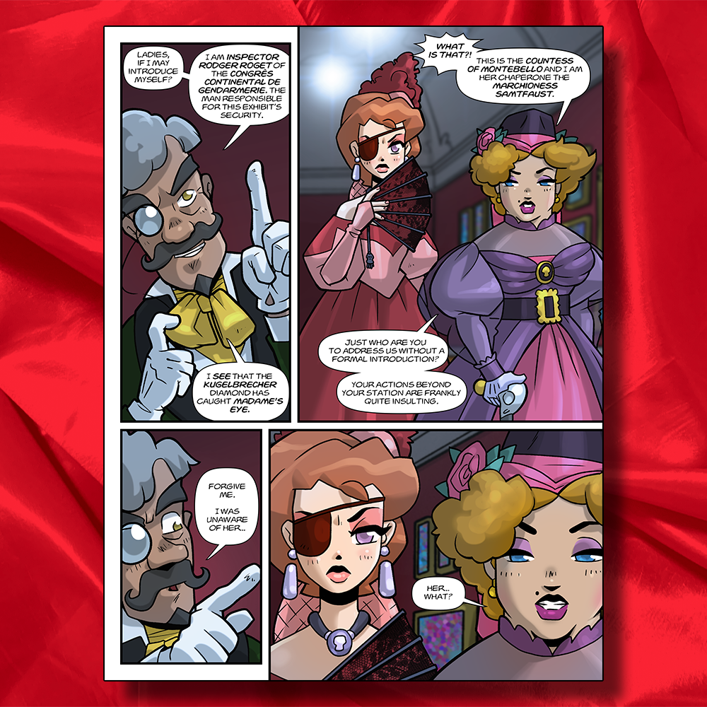 Set in a neo-Victorian era city much like Paris. The Crinoline Crime Club is a comic that features full skirts, curly mustaches, and rooftop chases.